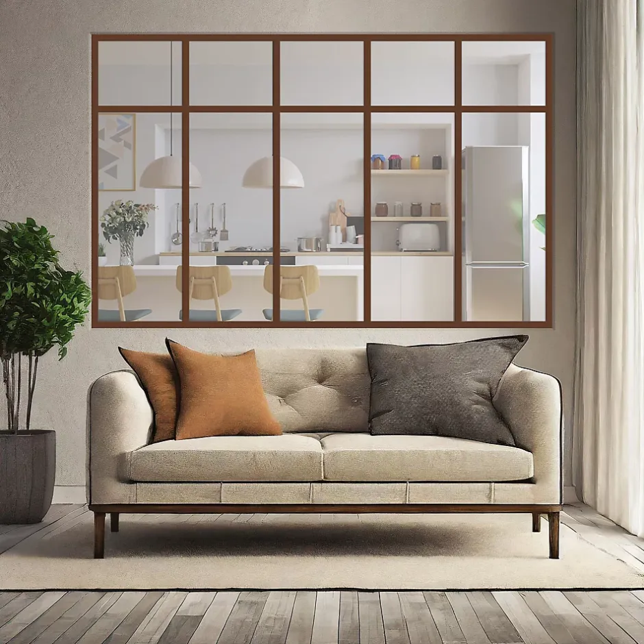 Verrière 5 sections avec imposte – L x H : 168 x 110 cm – Laqué effet rouille granité – vitrages inclus-MySystem