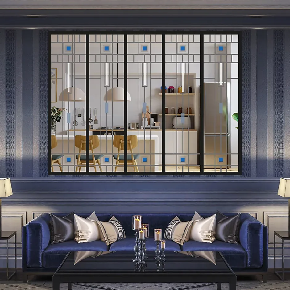 Verrière 5 verres Hudson - L x H : 168 x 125 cm - Laqué noir 9005 granité - verre Clair inclus-MySystem Hot