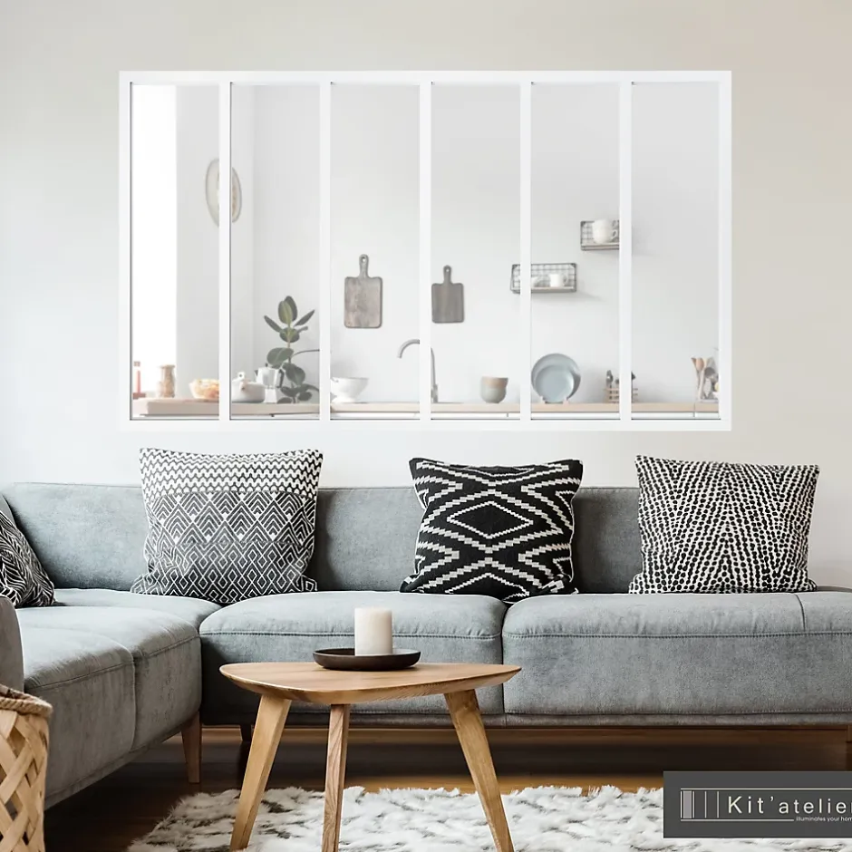 Verrière 6 carreaux transparents, coloris blanc H108 x l.183cm