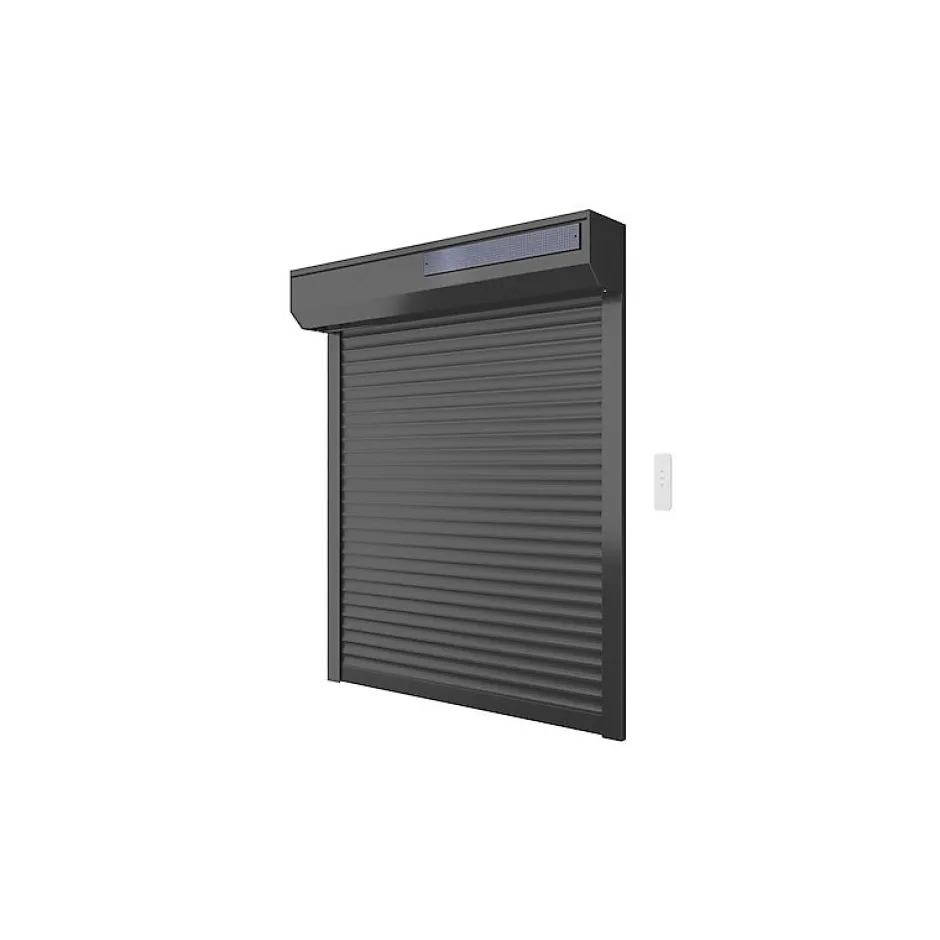 - dimensions : H 130 cm x L 120 cm – Coloris : Gris – manœuvre : radio télécommandée Solaire – Lames ajourées : Alu injectées mousse polyuréthane – Coffre, coulisses & lame finale : Aluminium – télécommande 1 canal incluse – rehausse incompatible avec ce modèle – Fabrication française
