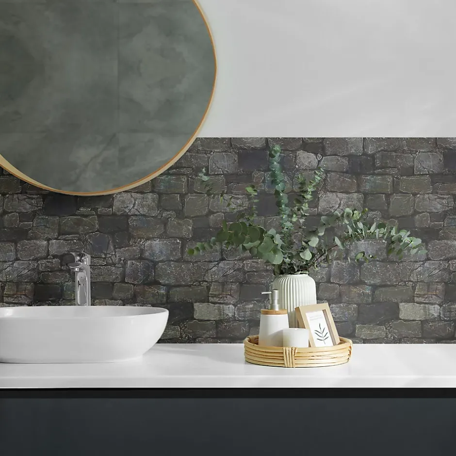 Wallfluent Panneau Mural TV 50×50 cm Texture De Mur En Pierre 4 pièces