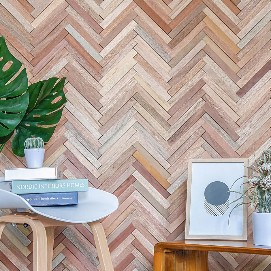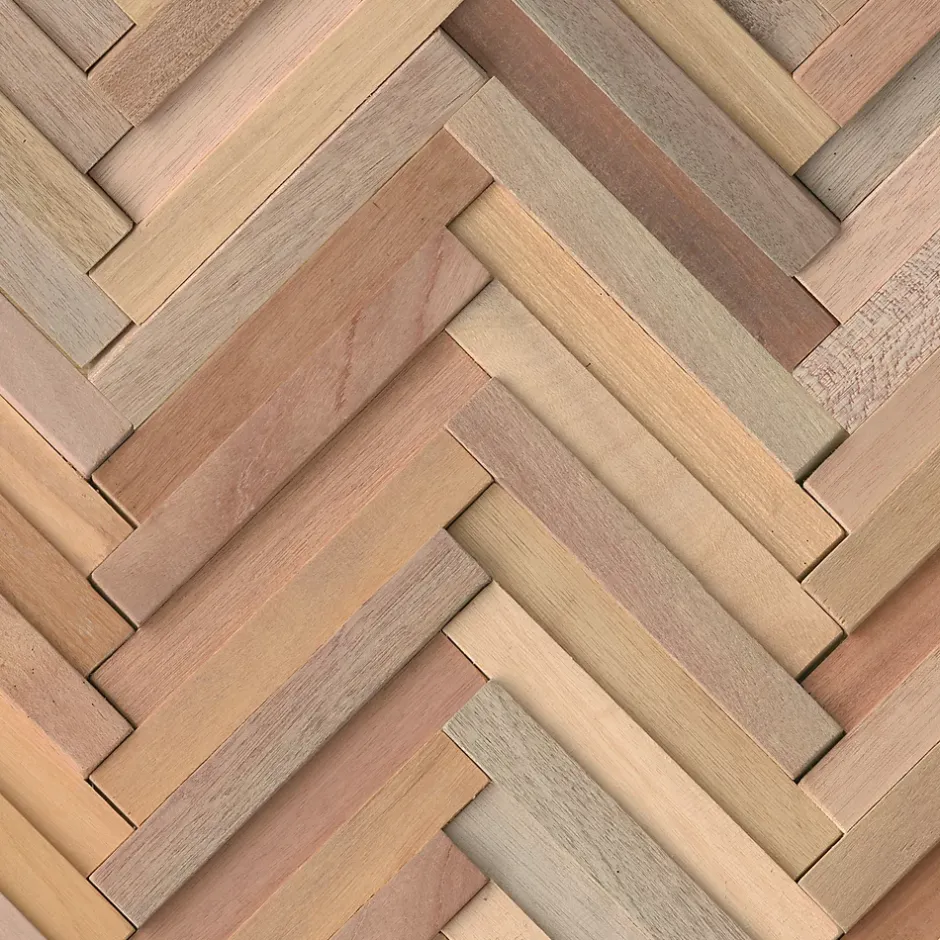 DÉCORATION MURALE GRAPHIQUEApportez un style contemporain et sophistiqué à votre intérieur avec le revêtement mural Spina, conçu dans un motif « bâton rompu » très prisé en décoration. Son design géométrique et dynamique apporte une vraie signature visuelle à vos murs, idéale pour créer une ambiance moderne dans un salon, une entrée, une chambre ou un bureau.ASPECT BRUT Le revêtement Spina est fabriqué en méranti brut, un bois léger apprécié pour son authenticité et son esthétique naturelle. Chaque élément révèle des nuances subtiles et un travail texturé qui renforcent l’aspect industriel et rustique du parement. Sa production provient de chutes de bois issues de la fabrication de parquets, ce qui valorise une ressource existante tout en offrant un produit original et qualitatif.POSE FACILE & RENDU PROFESSIONNELGrâce à son format optimisé, le parement Spina se pose facilement par collage à l’aide d’une colle polymère adaptée en cartouche. Les éléments s’imbriquent et s’ajustent parfaitement pour former un motif continu de bâton rompu, sans joints visibles, garantissant un rendu haut de gamme et harmonieux. Conditionné en panneaux prêts à installer, il est simple à manipuler et constitue une solution idéale pour moderniser rapidement et efficacement vos espaces intérieurs.CARACTÉRISTIQUES TECHNIQUES Type de produit : Parement mural décoratif en bois Dimensions d’un panneau : 10–18 x 300 x 465 mm Essence : Bois de méranti brut Motif : Bâton rompu (Spina)Utilisation : Intérieur – séjour, chambre, entrée, bureau Pose : Collage à la colle polymère haute résistance Conditionnement : 1,120 m² par lotNous utilisons uniquement du bois recyclé certifié, issu de programme de replantation et de forêt gérées durablement.
