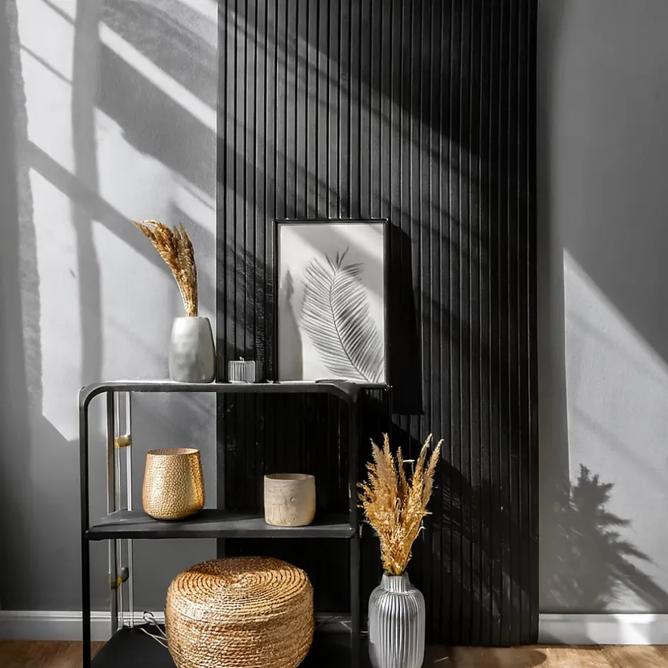 Lot de 15 Tasseaux Pin Abouté Peint Noir, L.250 cm x l.2 cm, Ep.4 cm Élégants tasseaux en pin peint en noir, parfaits pour des créations contemporaines. Leurs finitions lisses et leurs chanfreins apportent une touche moderne à tous les aménagements.- Facile à poser- Nos maitres mots sont qualité, disponibilité et savoir-faireÀ noter : Pour réaliser vos projets, ces tasseaux doivent être achetés avec les crémaillères correspondantes (vendues en paquets séparés) pour un système complet et fonctionnel.Référence des crémaillères : 3760128191253