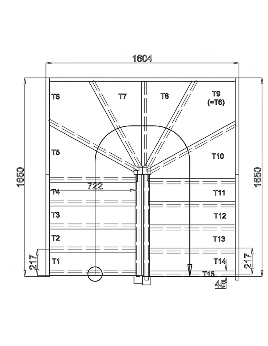 Escalier double quart tournant livré en kit, recoupable jusqu’à 285 cm. largeur 80 cm. Disponible avec ou sans rampe.