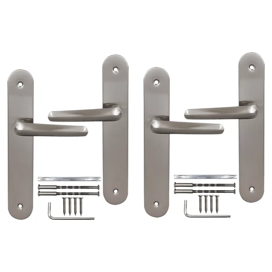 2 poignées de porte sur plaque rond Amga, entraxe 195mm, coloris gris satiné