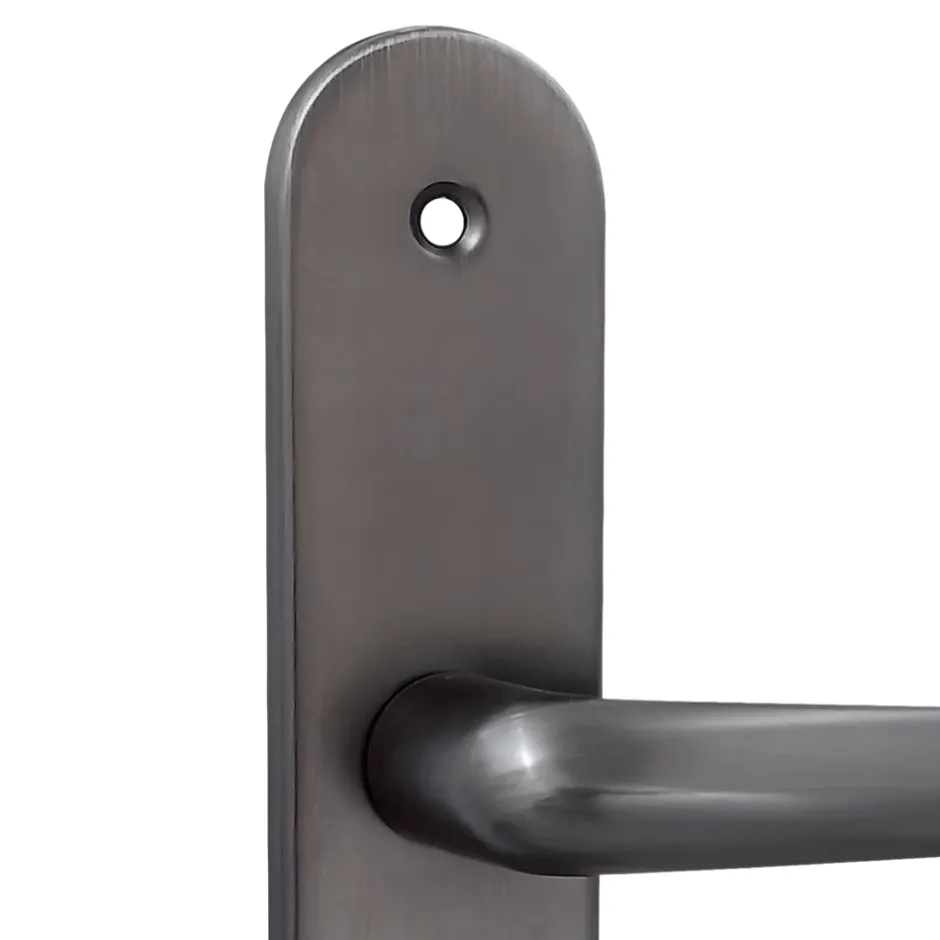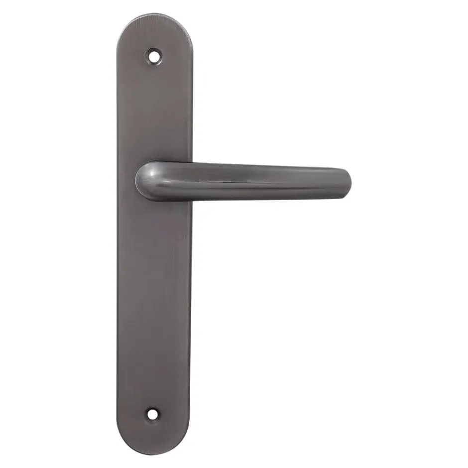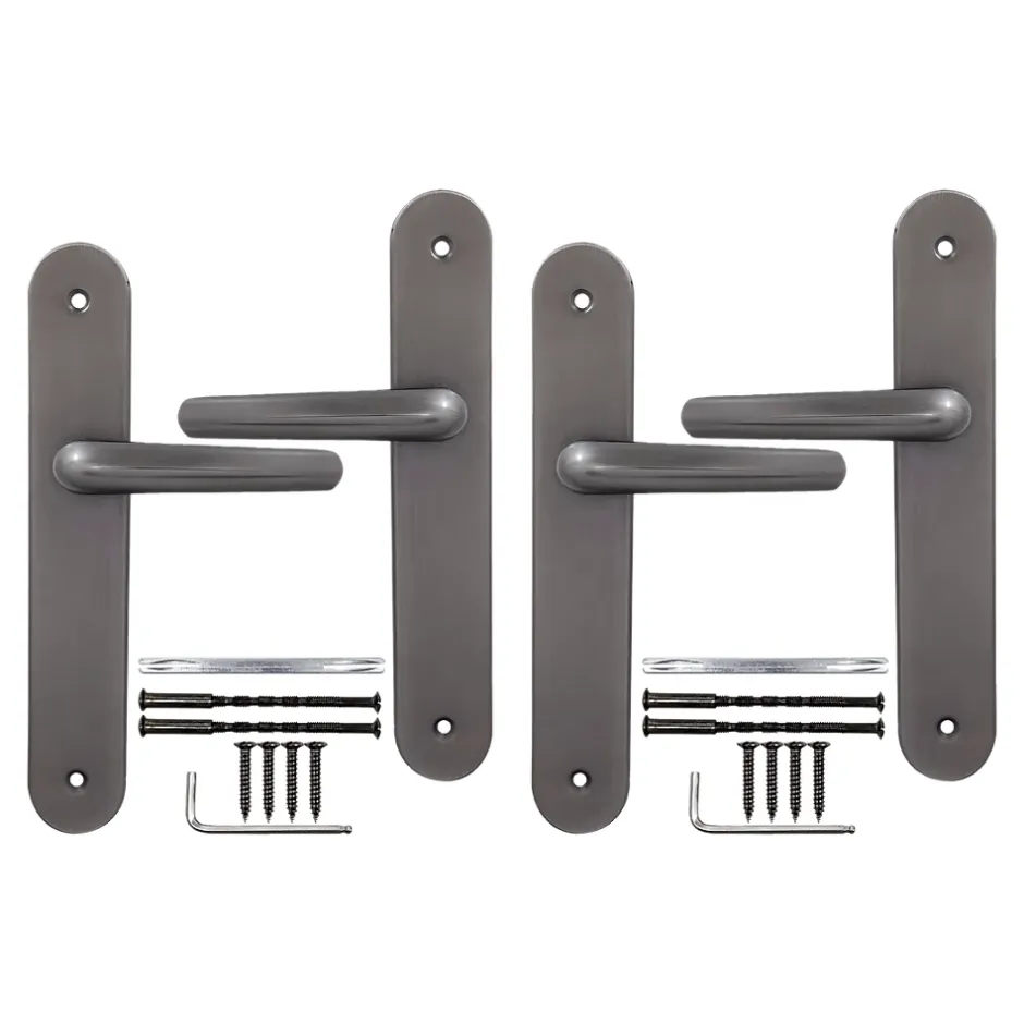 2 poignées de porte sur plaque rond Amga, entraxe 195mm, coloris titane