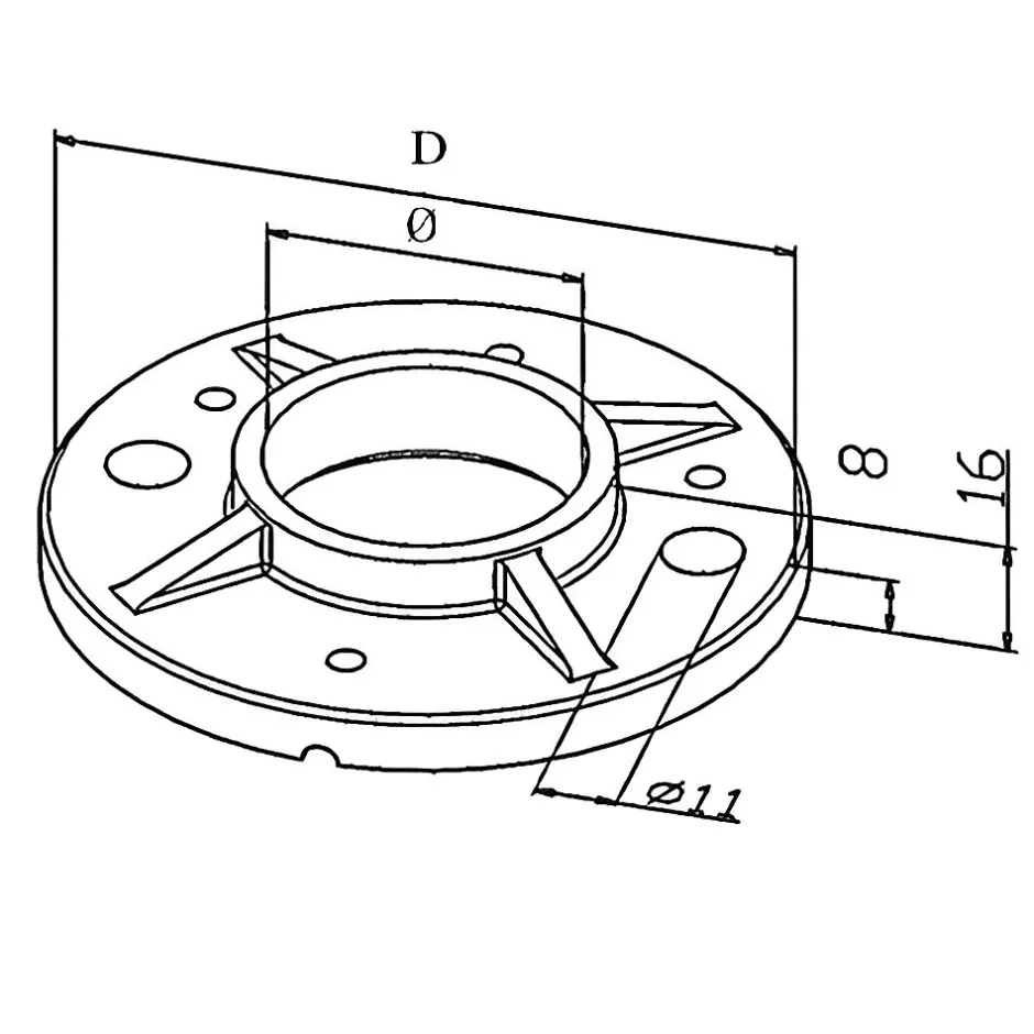 Platine de montage au sol à souder pour tube inox diamètre 42,4 mm. Permet l’installation de poteau de garde-corps à la française pour escalier, terrasse et mezzanine.