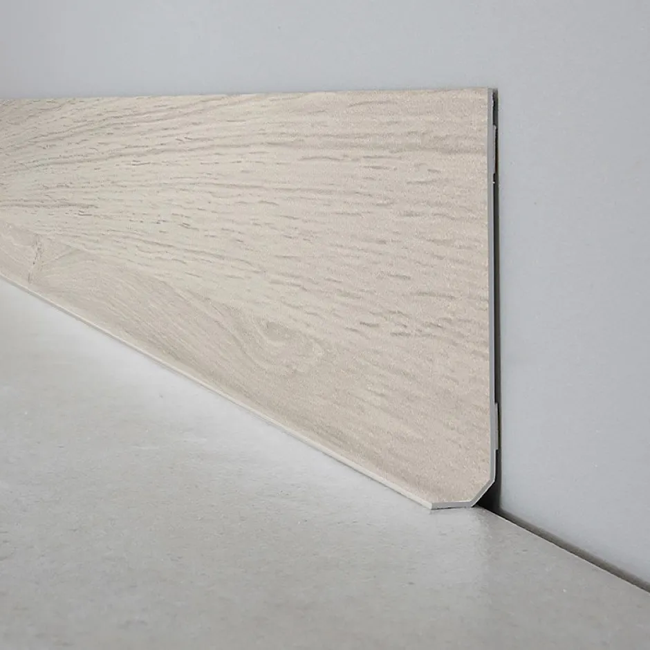Plinthe en PVC recyclé. Disponible en 1 mètre par lot de 10 ou en 2 mètres par lot de 25.Multi-surfaces : Sol Stratifié, Parquet, Carrelage, Vinyle.Prête à poser : bandes adhésives en polyoléfine de marque TESA préinstallées au dos.Vernis de protection sur le décor.Semi-rigide.Classement au feu M1 (ininflammable). A coller sur votre mur en placoplatre, peinture, toile de verre, ou même vos plinthes existantes, le support doit être propre et dépoussiéré.Fabriqué en France.