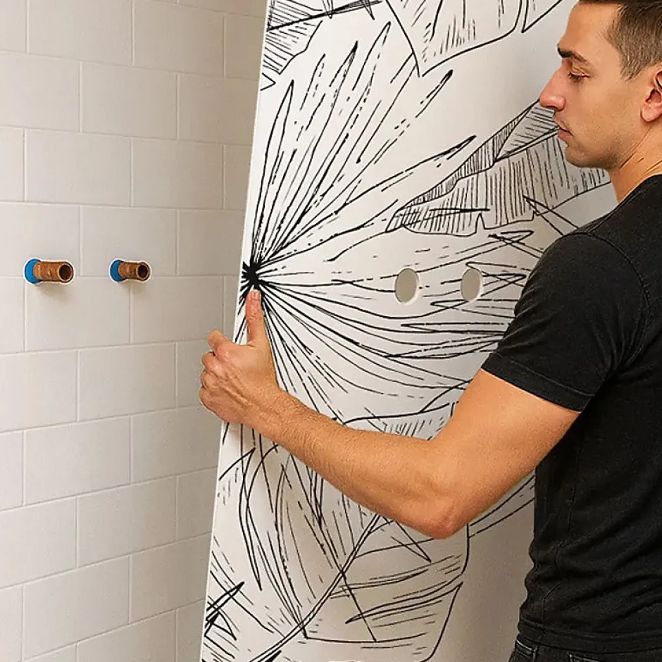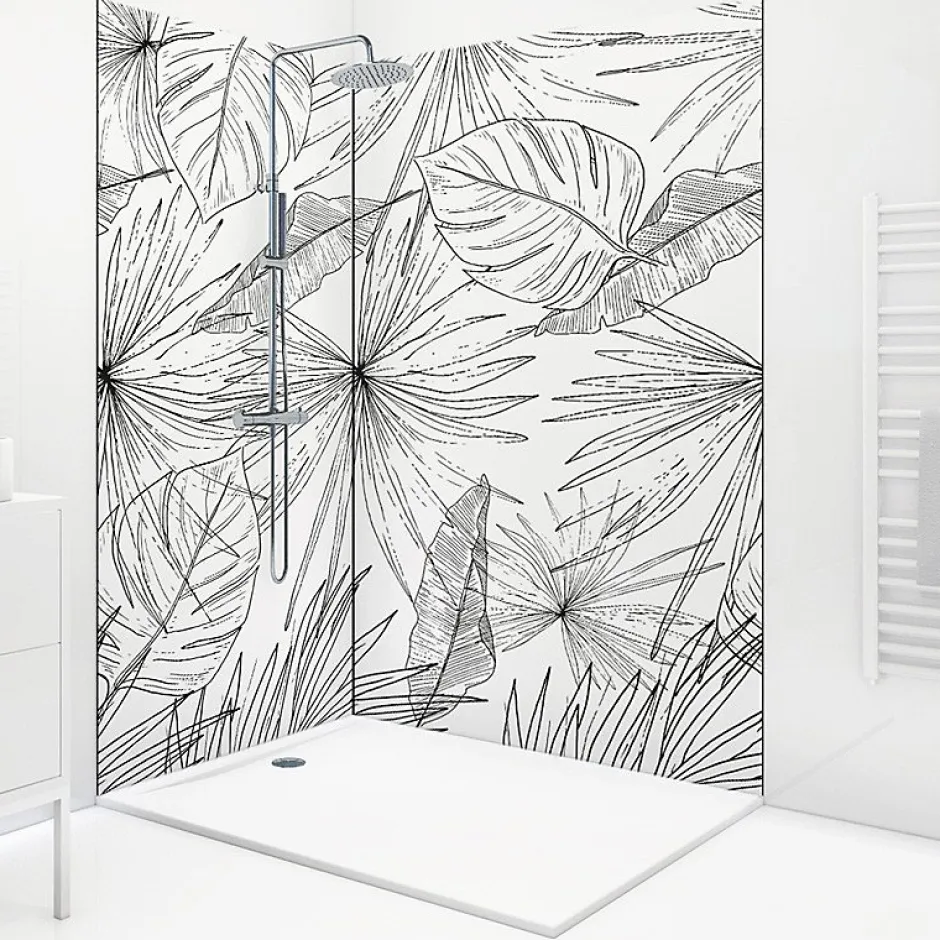 Panneaux muraux de douche en aluminium composite de 3 mm et profilés – Faciles à poser et à nettoyer (Fabrication française) Protégez et modernisez votre salle de bain avec ce pack de panneaux muraux, résistants, élégants et prêts à poser. Alternative contemporaine à la faïence murale, ces panneaux en aluminium de 3 mm offrent une solution rapide, pratique et durable pour habiller vos murs de douche. Leur finition apporte un rendu premium tout en facilitant l’entretien au quotidien. Points forts : Pack complet : 2 panneaux (90×220 cm et 120×220 cm) + 3 profilés (2 profilés de finition et 1 profilé d’angle). Pose rapide : installation rapide pour un résultat propre et durable. Découpe facile : une découpe à la scie cloche est conseillée pour l’installation de la robinetterie. Raccordables : panneaux raccordables à droite ou à gauche selon la configuration de votre douche. Supports compatibles : Placo, carrelage existant, faience, toile de verre, bois, béton. Conception française : Dessiné dans notre studio graphique et fabriqué dans notre atelier à Agen (47 – France) Caractéristiques : Couleur des panneaux : blanc et noir Couleur des profilés : noir Dimensions des panneaux : 90×220 cm et 120×220 cm Matériau : Aluminium composite Épaisseur : 3 mm Entretien : compatible raclette silicone, micro-fibre, éponge douce et eau chaude (pas de produits abrasif) -> si besoin ajouter du vinaigre blanc. Étanchéité : Joints silicone : appliquez un joint silicone entre les panneaux, le receveur et les profilés. Une solution élégante, durable et simple à installer pour transformer votre espace douche.