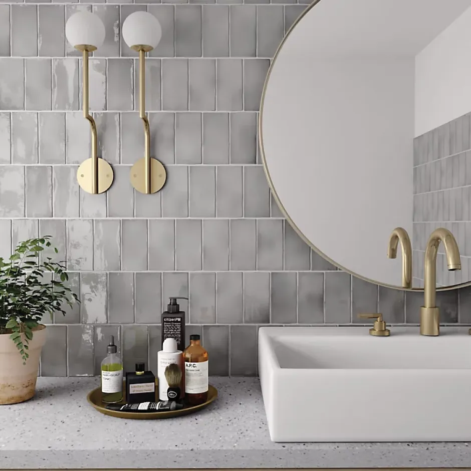Aelle Carrelage Carrelage mur effet zellige gris 7,5×15 cm MANACOR MERCURY GREY