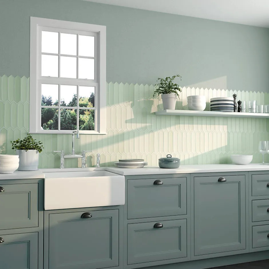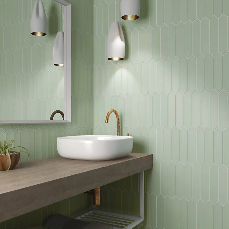 Aelle Carrelage Carrelage mur faience forme navette 5×25 cm mate LANSE MINT