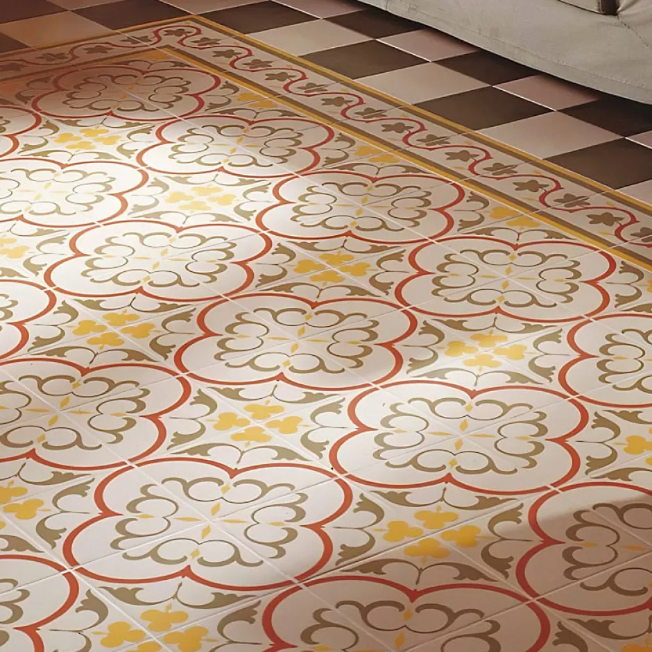 Matière: Grès pâte rouge Dimensions: 20 x 20 cm Usage: Intérieur Destination: Sol & Mur Finition: Mate Rectifié: Non Epaisseur: 8 mm Nuances: peu nuancé Existe en: 6 bordures différentes & 6 angles assortis Plongez dans l’univers du carrelage 1900, une collection au style carreaux de ciment qui allie authenticité et modernité. Réalisée en grès cérame pâte rouge, cette série offre une excellente résistance et une durabilité remarquable, idéale pour une pose au mur comme au sol, dans toutes les pièces de la maison. Avec son format carré de 20×20 cm et sa finition mate, la collection 1900 propose 13 couleurs unies et une sélection de motifs décoratifs inspirés des carreaux de ciment traditionnels, complétés par leurs bordures et angles assortis. Chaque carreau reflète un savoir-faire unique, où l’art et l’artisanat se rencontrent. Les décors évoquent l’élégance d’autrefois tout en s’intégrant parfaitement dans un intérieur contemporain. Créez de véritables tapis de patchwork personnalisés en mixant unis, motifs, bordures et angles pour un rendu à votre image. Et pour une finition parfaite, pensez aux plinthes assorties de la collection 1900, qui souligneront vos murs avec harmonie. N’hésitez pas à nous contacter pour demander un échantillon. .