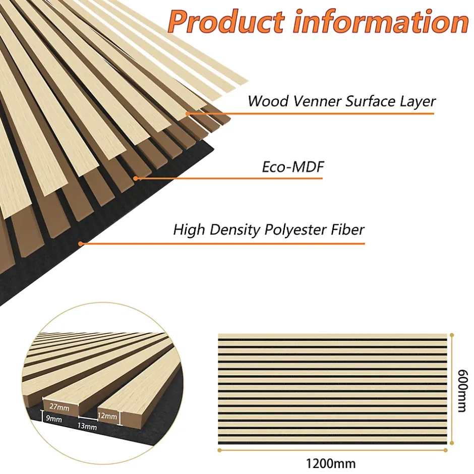 AICA Sanitaire Lot de 2 Panneaux Muraux Décoratifs Acoustiques Bois MDF 120x60cm chêne naturel AntiBruit, Facile à Poser