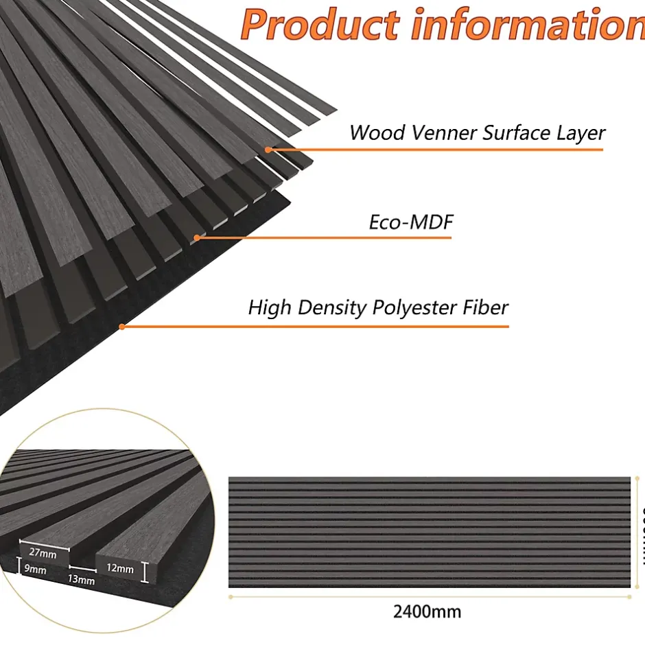 - ●Qualité sonore exceptionnelle : L’association de feutre acoustique haute densité et de lamelles de bois assure une absorption optimale du son et réduit efficacement les nuisances sonores.