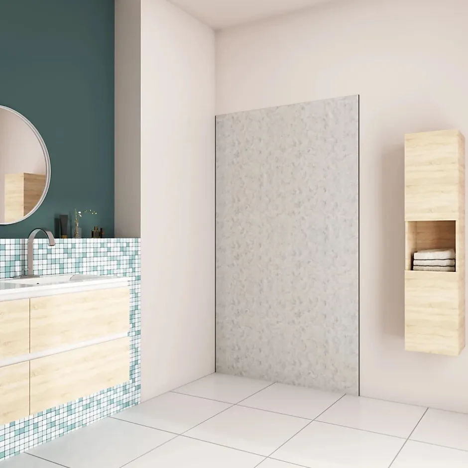 - ● Le panneau mural s’avère un choix plutôt économique pour habiller les murs d’une salle de bain. c’est également la pose qui vous permettra de faire des économies. En effet, celle-ci s’avère bien plus simple que pour un carrelage : peu de travaux de préparation des murs, moins de joint et une découpe plus simple. Ainsi, vous gagnerez en temps de pose et donc en budget pour la main d’œuvre si vous passez par un professionnel.