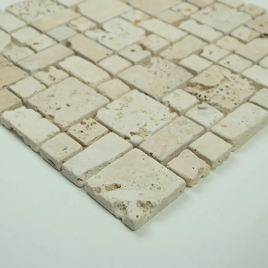 Le travertin est réputé pour sa résistance et sa durabilité, ce noble matériau renait pour décorer nos espaces de vie actuels. Grâce aux différentes caractéristiques, la mosaïque vous apportera une touche d’élégance naturelle et épurée à votre intérieur. Sa texture et ses nuances naturelles quant à elles apporteront une douceur intemporelle et indémodable à vos espaces de vie. La mosaïque est versatile, elle s’utilise en crédence, en frise ou en un mur complet et s’adapte harmonieusement aux différentes décorations intérieures des pièces de votre maison : cuisine, salle de bains, terrace…Grâce à son caractère et sa nature, le travertin reste un matériau naturel ce qui explique les éventuelles variations de couleurs, de textures, de dimensions et d’aspect final entre les produits présentés et ceux livrés. Ces variations liées à l’esthétique n’altèrent pas les caractéristiques techniques des produits. Caractéristiques : Effet : Mat vieilli, brillant, poli, rempli… Couleur : Blanc Ivoire – Beige – Noce – Jaune – Silver- Mixe Matières : Travertin Conditionnement : Plaque 30,5×30,5 Destination : Tous types de surfaces Pose : Au sol et aux murs Épaisseur : 10mm (1cm), 0,8mm Largeur de joint conseillé (standard) : 2mm ✅ Les atouts du travertin : Matériau naturel et durable : Vous permet d’avoir une part durable de la nature dans vos espaces de vie. Entretien facile : Le travertin ne nécessite pas de produits spécifiques pour l’entretenir. Il suffit juste de l’imperméabiliser régulièrement (conseil), et de nettoyer vos surfaces avec de l’eau et du savon doux. Une myriade de choix : Le travertin et le marbre sont des matériaux versatiles. En mosaïque ou en carrelage, les nuances et les couleurs vous donneront la liberté de décorer vos intérieurs selon vos goûts.