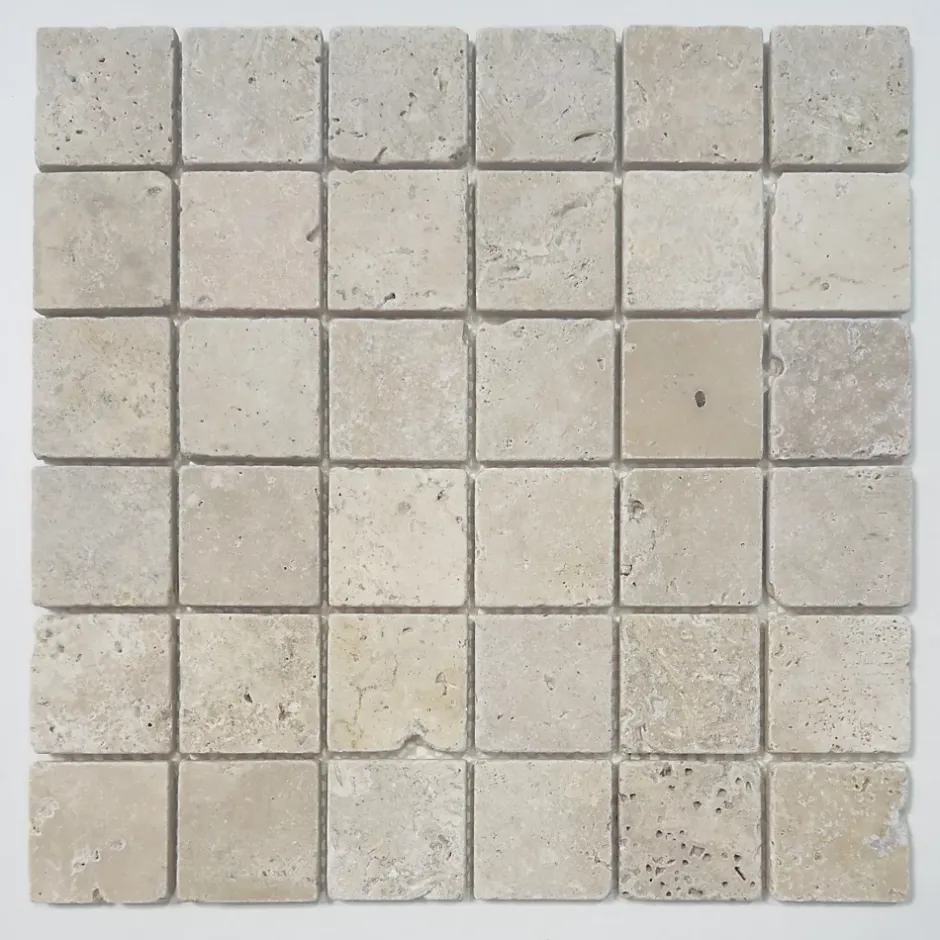 Le Travertin est réputé pour sa résistance et sa durabilité, ce noble matériau renait pour décorer nos espaces de vie actuels. Grâce aux différentes caractéristiques, la mosaïque vous apportera une touche d’élégance naturelle et épurée à votre intérieur. Sa texture et ses nuances naturelles quant à elles apporteront une douceur intemporelle et indémodable à vos espaces de vie. La mosaïque est versatile, elle s’utilise en crédence, en frise ou en un mur complet et s’adapte harmonieusement aux différentes décorations intérieures des pièces de votre maison : cuisine, salle de bains, terrace…Grâce à son caractère et sa nature, le travertin reste un matériau naturel ce qui explique les éventuelles variations de couleurs, de textures, de dimensions et d’aspect final entre les produits présentés et ceux livrés. Ces variations liées à l’esthétique n’altèrent pas les caractéristiques techniques des produits. Caractéristiques : Effet : Mat vieilli Couleur : Blanc Ivoire Matières : TravertinConditionnement : Plaque 30,5×30,5 Destination : Tous types de surfaces Pose : Au sol et aux murs Épaisseur : 0,8 MM Largeur de joint conseillé (standard) : 2mm ✅ Les atouts du travertin : Matériau naturel et durable : Vous permet d’avoir une part durable de la nature dans vos espaces de vie. Entretien facile : Le travertin ne nécessite pas de produits spécifiques pour l’entretenir. Il suffit juste de l’imperméabiliser régulièrement (conseil), et de nettoyer vos surfaces avec de l’eau et du savon doux. Une myriade de choix : Le travertin et le marbre sont des matériaux versatiles. En mosaïque ou en carrelage, les nuances et les couleurs vous donneront la liberté de décorer vos intérieurs selon vos goûts.