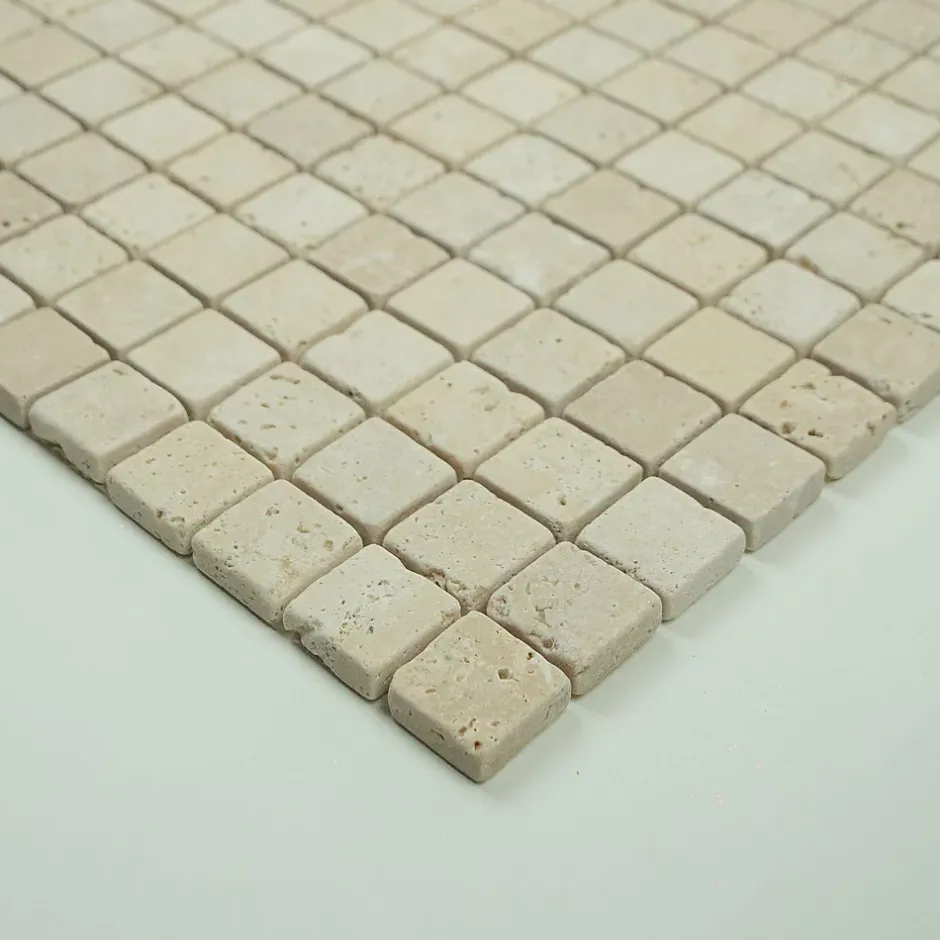 Le travertin est réputé pour sa résistance et sa durabilité, ce noble matériau renait pour décorer nos espaces de vie actuels. Grâce aux différentes caractéristiques, la mosaïque vous apportera une touche d’élégance naturelle et épurée à votre intérieur. Sa texture et ses nuances naturelles quant à elles apporteront une douceur intemporelle et indémodable à vos espaces de vie. La mosaïque est versatile, elle s’utilise en crédence, en frise ou en un mur complet et s’adapte harmonieusement aux différentes décorations intérieures des pièces de votre maison : cuisine, salle de bains, terrace…Grâce à son caractère et sa nature, le travertin reste un matériau naturel ce qui explique les éventuelles variations de couleurs, de textures, de dimensions et d’aspect final entre les produits présentés et ceux livrés. Ces variations liées à l’esthétique n’altèrent pas les caractéristiques techniques des produits. Caractéristiques : Effet : Mat vieilliCouleur : Blanc IvoireMatières : TravertinConditionnement : Plaque 30,5×30,5 Destination : Tous types de surfaces Pose : Au sol et aux murs Épaisseur : 10mm (1cm) Largeur de joint conseillé (standard) : 2mm ✅ Les atouts du travertin : Matériau naturel et durable : Vous permet d’avoir une part durable de la nature dans vos espaces de vie. Entretien facile : Le travertin ne nécessite pas de produits spécifiques pour l’entretenir. Il suffit juste de l’imperméabiliser régulièrement (conseil), et de nettoyer vos surfaces avec de l’eau et du savon doux. Une myriade de choix : Le travertin et le marbre sont des matériaux versatiles. En mosaïque ou en carrelage, les nuances et les couleurs vous donneront la liberté de décorer vos intérieurs selon vos goûts. ♂️Pose et entretien : Les modèles de mosaïques restent