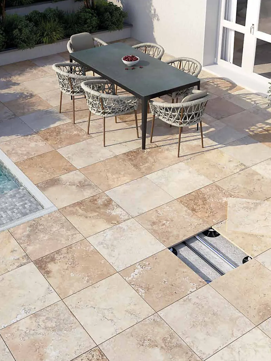 Conçu pour durer, le 60×60 Lot 2 Dalles ép. 20mm Travertin Antic Extérieur R11 habille votre terrasse avec style. Antidérapant et résistant, il combine sécurité et design. Besoin d’un échantillon pour faire votre choix? N’hésitez pas à nous contacter.