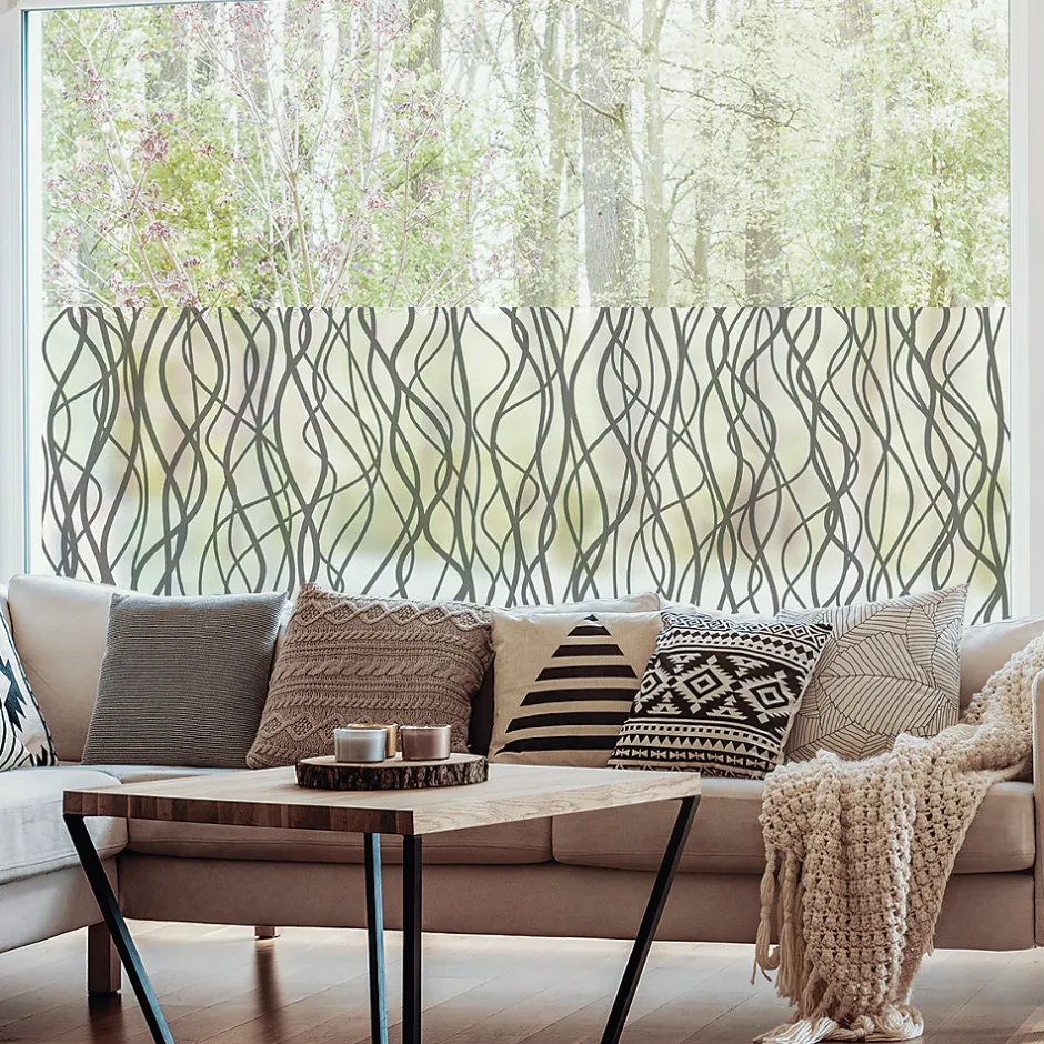 Ambiance Sticker Film Fenêtre Anti Regard Occultant - LIANES SAUVAGES GRIS LONG - Stickers pour Vitres & Porte de Douche - 40X200cm