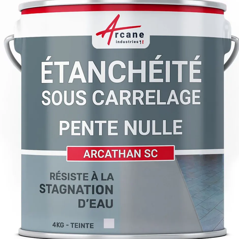 Idéal en étanchéité sous carrelage, dalles sous plot, ARCATHAN SC est une résine qui résiste aux stagnations d’eau et garantit une étanchéité durable de vos terrasses et toit-terrasses carrelés.CONSOMMATION2.5 kg par m² sur l’ensemble des couches décomposé comme suit :Sous-couche diluée : 250 g par m² (séchage 4-5 heures)Première couche 😮 1 kg par m²o Incorporation immédiate de l’ARCATISSU dans la couche fraiche, marouflage à sec (avec un outil sec)o 1 kg par m², immédiatement après incorporation de l’ARCATISSU et le marouflageDeuxième couche : 250 g par m² (après séchage de la première couche : 24 heures)Saupoudrage de silice HN31 : 2 kg / m²Pour les supports très peu poreux, il est parfois difficile d’ appliquer les 2.5kg par m² pour l’ensemble des 3 couches (exemple carrelage) car la résine sera moins absorbée qu’un support béton.Vous pouvez soit appliquer 2 couches supplémentaires à 24h de séchage d’intervalle ou des couches plus épaisses en augmentant les temps de séchage.A noter que 2.5kg/m² est le rendement conseillé.Nous vous recommandons l’utilisation d’une colle FLEX et joint FLEX hydro afin d’augmenter la durabilité de votre étanchéité sous carrelage.MÉTHODOLOGIE FACILE D’APPLICATION:Dans un seau vide verser un peu d’Arcathan SC dilué avec 5 à 10% d’eau – Appliquer de cette manière afin de recouvrir toute la surface , ne pas oublier les remontées si il y en a. (séchage 4-5 heures)Ensuite diviser par 2 ce qu’il reste, une moitié pour la 1ère couche de produit pur et l’autre moitié sera pour la 2ème couche de produit pur (24 heures de séchage par couche)EXEMPLE POUR UNE SURFACE DE 50M²:50 X 2.5= 125 kg de résine Arcathan SCIl vous faudra 8 seaux de 15kg et 2 seaux de 4 kg et 100 kg de silice.