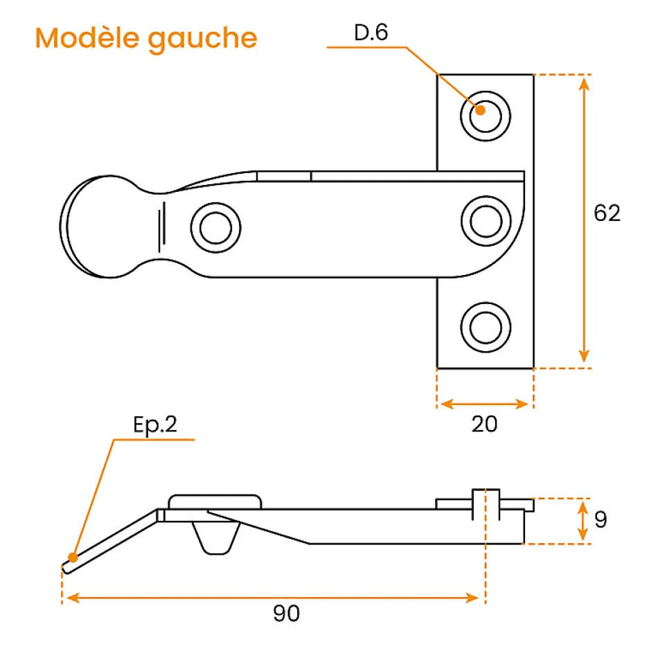 L’Arrêt de Volet Battant St Brieuc avec Butée est un accessoire de quincaillerie conçu pour maintenir vos volets battants ouverts en toute sécurité. Avec sa longueur de 90 mm et sa butée intégrée, il offre une solution fiable et esthétique pour vos volets, tout en assurant une résistance optimale aux intempéries.Caractéristiques techniques : – Type de produit : Arrêt de volet battant avec butée- Modèle : St Brieuc- Côté : Gauche- Longueur du levier : 90 mm- Matière : Acier- Fixation : À visser (vis non incluses)- Compatibilité : Volets battants en bois, PVC ou aluminium- Utilisation : Maintien des volets en position ouverte- Fabrication : France Torbel