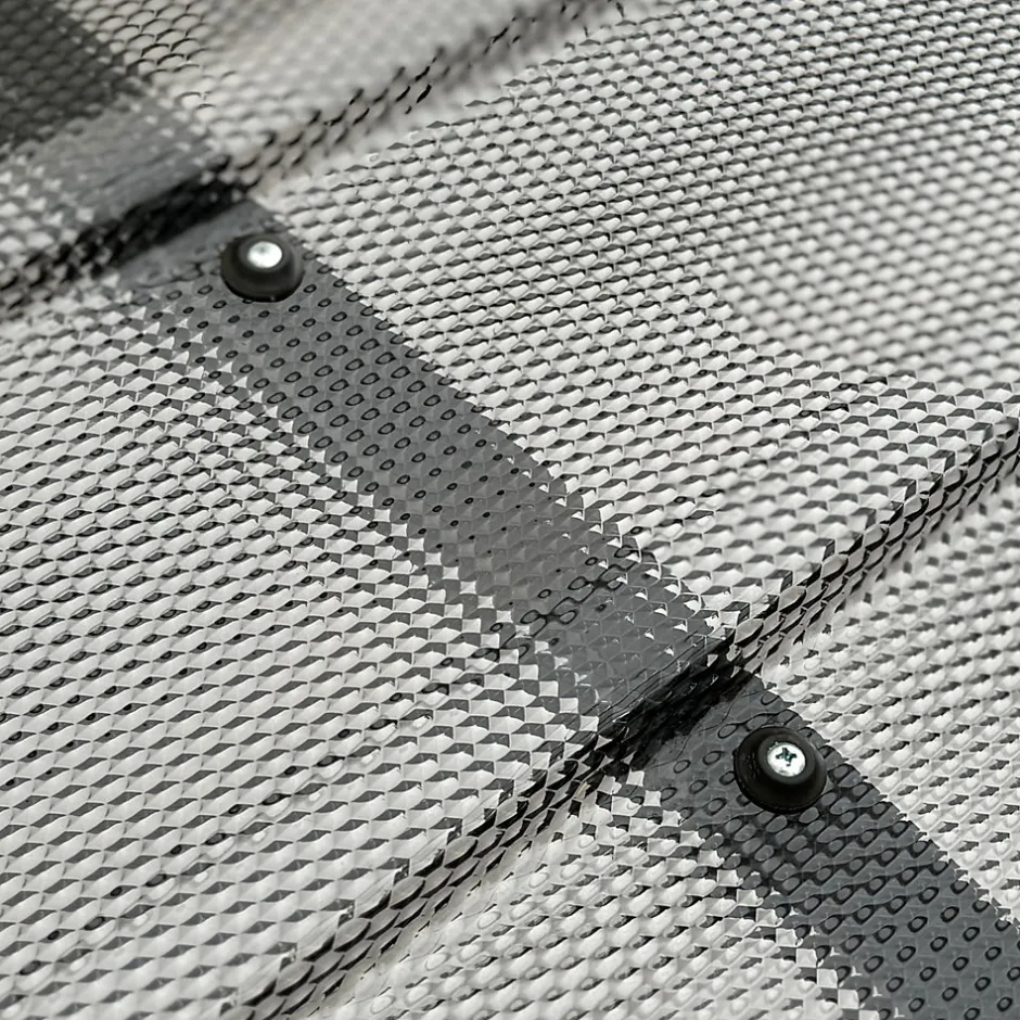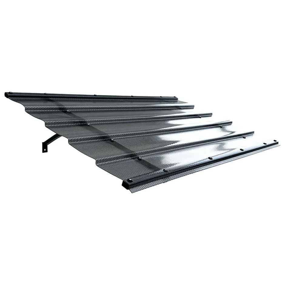 Les auvents Starkedach offrent une protection durable contre le vent et les intempéries ! DIMENSIONS : 150 x 95,4 cmCOULEUR DE L’AUVENT : revêtement gris / structure RAL7016 (anthracite) TYPE : DROITAvantages : Structure stable en aluminium peint par poudrage ; Design décoratif ; Couverture en polycarbonate monobloc MK PC DIAMONDS Tile Effect ! Protection durable contre les intempéries et les rayons UV ; Montage facile et simple ; Garantie incluse. Application : au-dessus des portes extérieures ; au-dessus des portes de garage ; au-dessus des balcons ; au-dessus des fenêtres ; au-dessus des vitrines. Caractéristiques techniques : Structure : Structure en aluminium thermolaqué selon le nuancier RALRevêtement : MK PC DIAMONDS Tile Effect en polycarbonate monolithique diamanté, trois couleurs : transparent, gris, bronzeDimensions : 150 x 95,4 cmMK PC DIAMONDS Tile Effect revêtement en polycarbonate monolithiqueLes auvents StarkeDACH Diamonds sont recouverts d’un revêtement en polycarbonate monolithique MK PC DIAMONDS Tile Effect, qui se caractérise par une surface diamantée unique, particulièrement esthétique à la lumière du soleil. Les vis utilisées sont équipées d’entretoises spécialement adaptées à la couleur du revêtement, ce qui les rend moins visibles et rend la toiture encore plus esthétique. Surface à structure diamantée ; Résistance aux variations de température ; Résistance aux agents atmosphériques ; Protection longue durée contre les rayons UV ; Durabilité et solidité ; Coefficient de transmission lumineuse élevé ; Classe de résistance au feu B1 ; Bonnes propriétés isolantes ; Longue durée de vie ; Les vis utilisées sont équipées d’entretoises MK PC DIAMONDS spécialement adaptées à la couleur du revêtement.