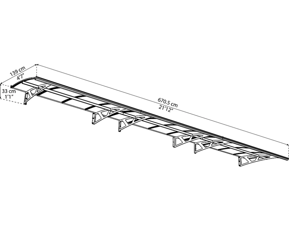 Auvent arrondi Amsterdam gris clair l.670,5 x P.139 x H.33 cm Canopia by Palram