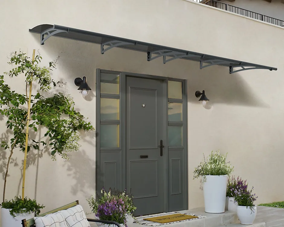 - Avec son design intemporel, l’auvent de porte Aquila ultra-résistant saura parfaitement s’adapter à votre maison.