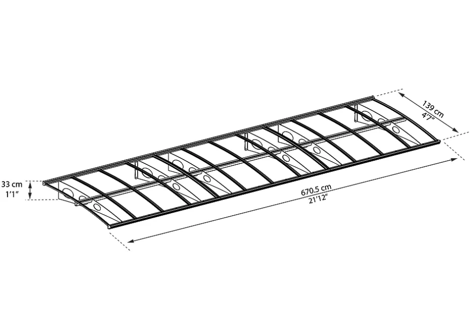 Auvent arrondi Herald gris l.670,5 x P.139 x H.33 cm Canopia by Palram