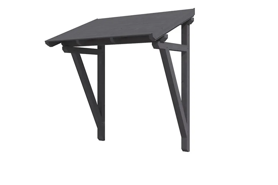 Auvent de porte d’entrée SKAN HOLZ « Paderborn 2 »• Dimensions extérieures : 242 x 156 cm• Structure massive en bois massif abouté d’excellente qualité (BMA épicéa)• Peinture couleur en gris ardoise• Montants 12 x 12 cm• Pannes 12 x 12 cm• Chevrons 6 x 12 cm• Véritables assemblages à tenons et mortaises• Chevrons entaillés• voligeage de 20 mm• Bardeaux disponibles en accessoires• Livraison sans matériel de fixation muraleStructureLa structure est réalisée en bois massif de construction (KVH). On entend par KVH du bois d’épicéa massif collé sans fin et séché mécaniquement. Chaque section de bois est séchée, scannée pour identifier les défauts, triée et collée de manière résistante aux intempéries par dents collées. Ses fissures, ses branches et de petits nœuds reflètent le caractère des matériaux utilisés.