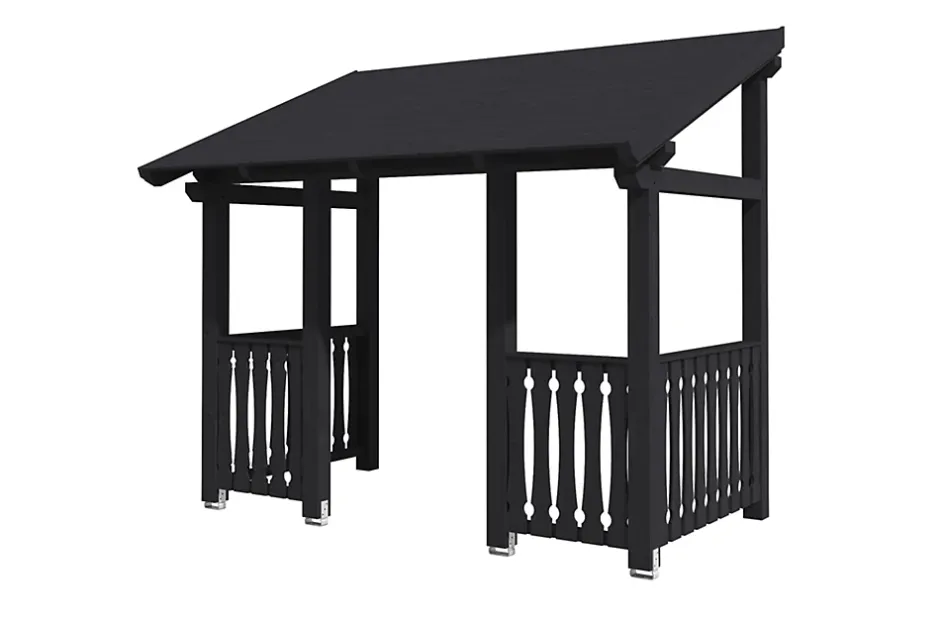 Traitement coloréLes pièces ayant bénéficié d’un traitement coloré ont été traitées à l’aide d’une lasure ou d’une peinture haut de gamme. Cela protège le bois du bleuissement, des dégâts dus aux rayons UV, diminue la dilatation et la rétractation du bois, tout en laissant tout de même apparaître sa structure. Les pièces sont baignées de lasure deux fois en usine. L’excédent est ensuite éliminé par brossage.Vous pouvez commencer le montage dès la livraison en éliminant l’étape laborieuse de l’application de primaire et de peinture. Chaque kit est accompagné d’un pot de couleur ou de peinture destiné aux réparations. Cette quantité vous suffira pour traiter au moins deux fois les dégâts et les emplacements de coupe et de vissage nécessaires au montage.Si vous souhaitez améliorer encore l’aspect des surfaces, poncez légèrement les surfaces visibles après le montage et appliquez-y une couche de lasure ou de peinture de bonne qualité. Des traces de dépôts peuvent être présentes sur les pièces traitées sur toutes leurs faces compte tenu du procédé technique d’application.Couverture de toitLe toit est livré avec des planches de toit de 20 mm d’épaisseur à couvrir ensuite des bardeaux (à commander en option).AncrageLe kit comprend des platines de fixation en acier plat galvanisé et des chevilles pour la fixation sur les fondations à réaliser par le client. Ce système garantit un assemblage parfait sur le support.
