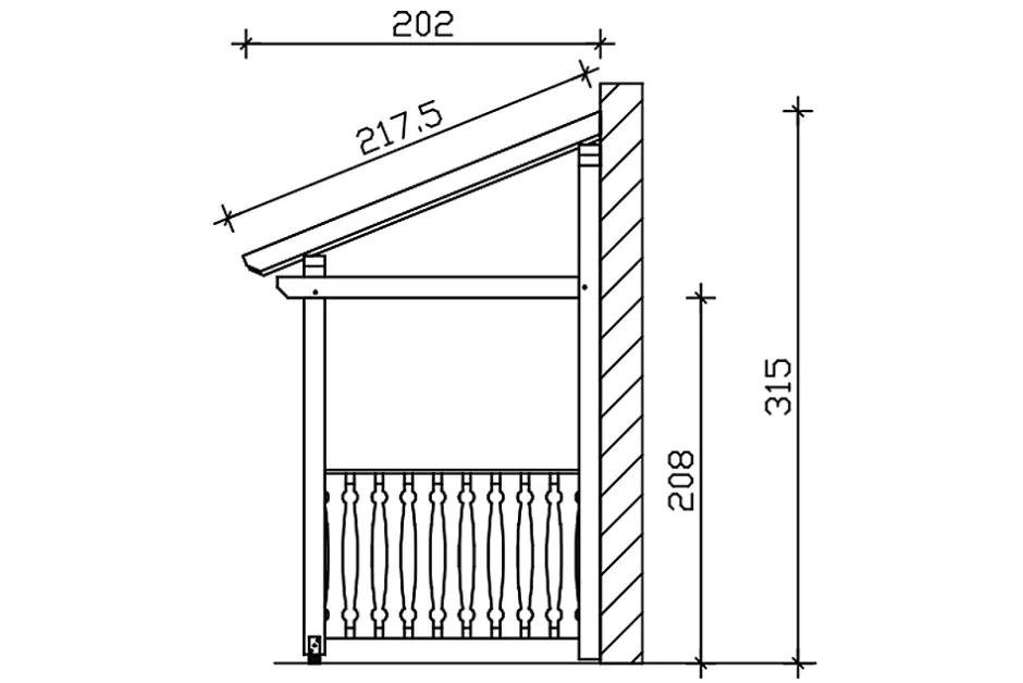 Auvent de porte d’entrée SKAN HOLZ « Paderborn 8 »• Dimensions extérieures : 336 x 202 cm• Structure massive en bois massif abouté d’excellente qualité (BMA épicéa)• Peinture couleur en anthracite• Montants 12 x 12 cm• Pannes 12 x 12 cm• Chevrons 6 x 12 cm• Véritables assemblages à tenons et mortaises• Chevrons entaillés• Support à visser compris• voligeage de 20 mm• Bardeaux disponibles en accessoires• Livraison sans matériel de fixation muraleStructureLa structure est réalisée en bois massif de construction (KVH). On entend par KVH du bois d’épicéa massif collé sans fin et séché mécaniquement. Chaque section de bois est séchée, scannée pour identifier les défauts, triée et collée de manière résistante aux intempéries par dents collées. Ses fissures, ses branches et de petits nœuds reflètent le caractère des matériaux utilisés.
