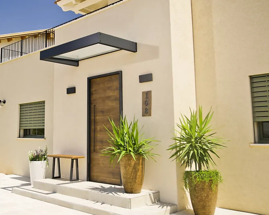 La Sophia réinvente les auvents de porte tels que vous les connaissez : un magnifique encadrement en aluminium gris, un panneau transparent aussi résistant qu’attrayant. Tout en améliorant l’aspect et la fonctionnalité de l’extérieur de votre maison, cette marquise moderne vous procure également une protection ; pour vous, votre porte, votre entrée ainsi que tout ce qui se trouve en dessous. Cet auvent ultra-résistant est facile à installer et conçu pour résister aux conditions météorologiques difficiles, de sorte que vous, vos affaires et votre porte soyez protégés pour les années à venir. Avec la marquise Sophia, offrez-vous la protection dont vous avez besoin dans le style que vous souhaitez.