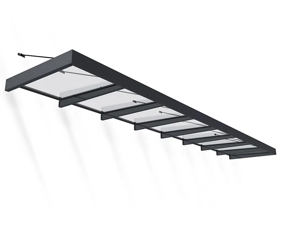 Auvent Sophia XL 140 x 750 cm Grise – Transparent en Acrylique et aluminium