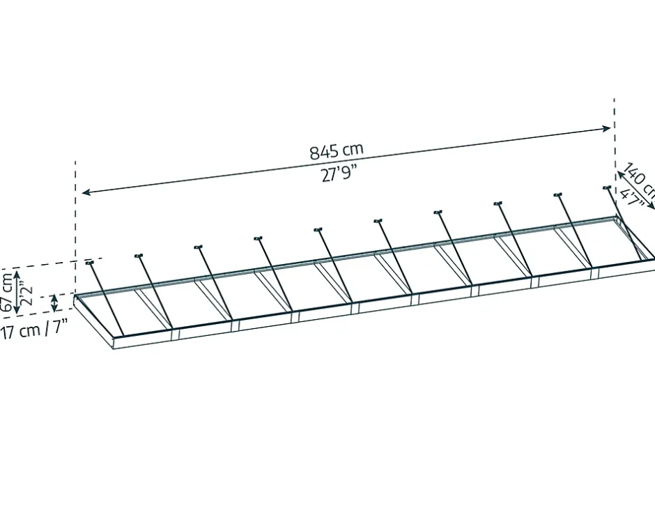 Auvent Sophia XL 140 x 845 cm Grise – Translucide en Acrylique et aluminium
