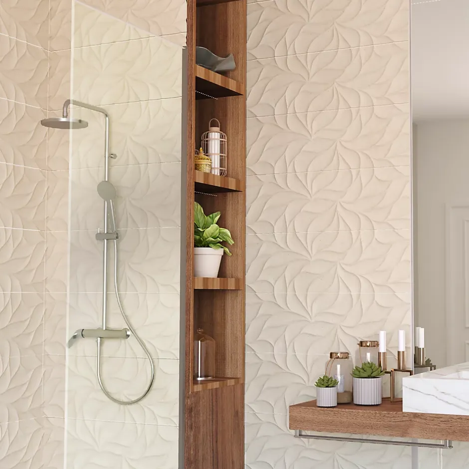 Offrez à vos intérieurs une ambiance douce et raffinée avec la faïence murale Avenue Baldocer, au décor feuille délicatement gravé en relief. Son effet pierre subtil, sa teinte beige chaleureuse et sa finition mate en font un revêtement mural idéal pour créer une atmosphère apaisante.