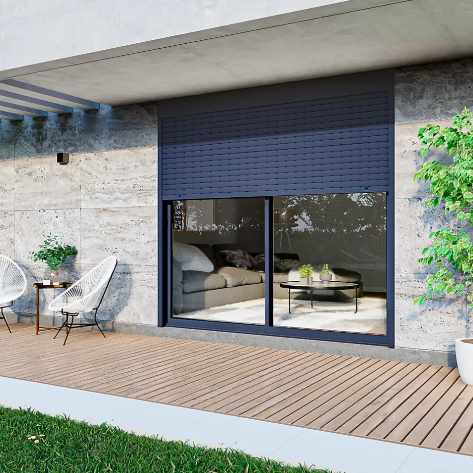 Baie coulissante en aluminium gris avec volet roulant filaire l.240 x H.215 cm Uw=2