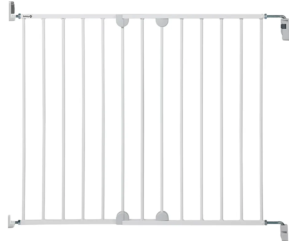 Barrière de porte et d’escalier avec portillon A visser au mur Recommandée en haut des escaliers car absence de barre de sol 2 panneaux coulissent pour couvrir les larges ouvertures De 62 à 102 cm sans extension Ouverture facile d’une seule main Ouverture possible dans les 2 sens Choix du sens d’ouverture (exemple : uniquement vers le palier d’escalier) Retrait facile du mur en l’absence d’enfants Il est recommandé d’installer deux barrières : une en haut et une en bas des escaliers.
