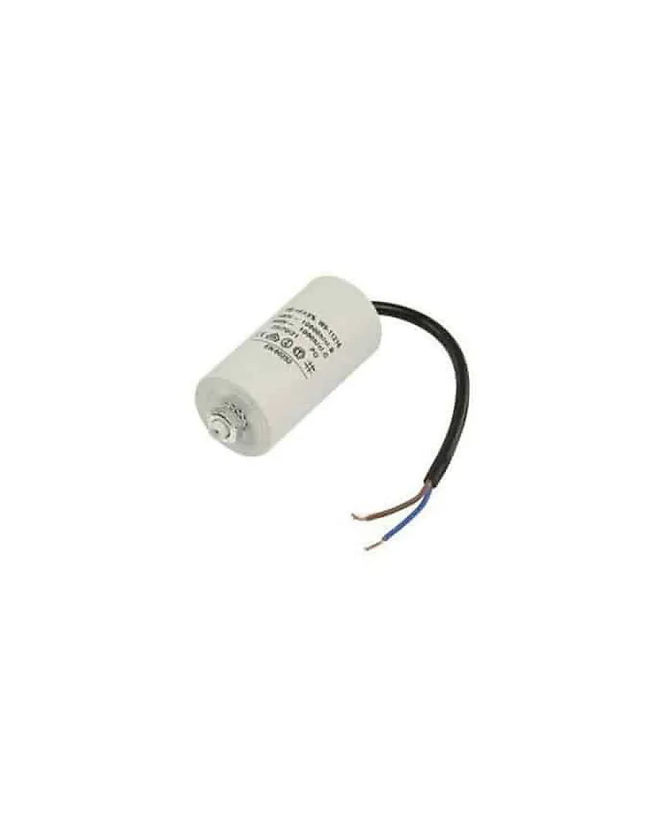 - Ce condensateur a un rôle d’aide au démarrage grâce à ses 8 micro-farads (symbolisé par le symbole suivant µF) et a une fréquence nominale en 50/60 Hz.