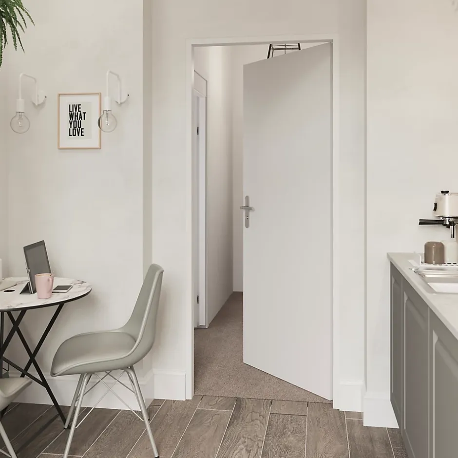 La porte réversible Alpille apportera de la lumière et de la modernité dans tous les intérieurs avec son design épuré et son revêtement de couleur blanche. Disponible en différentes tailles, différentes couleurs et en version coulissante.
