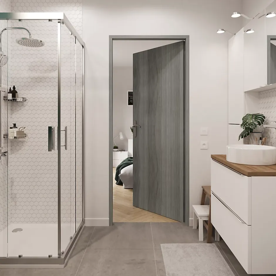 La porte réversible Alpille apportera de la modernité dans tous les intérieurs avec son design épuré et son revêtement imitation chêne grisé. Disponible en différentes tailles, différentes couleurs et en version coulissante.