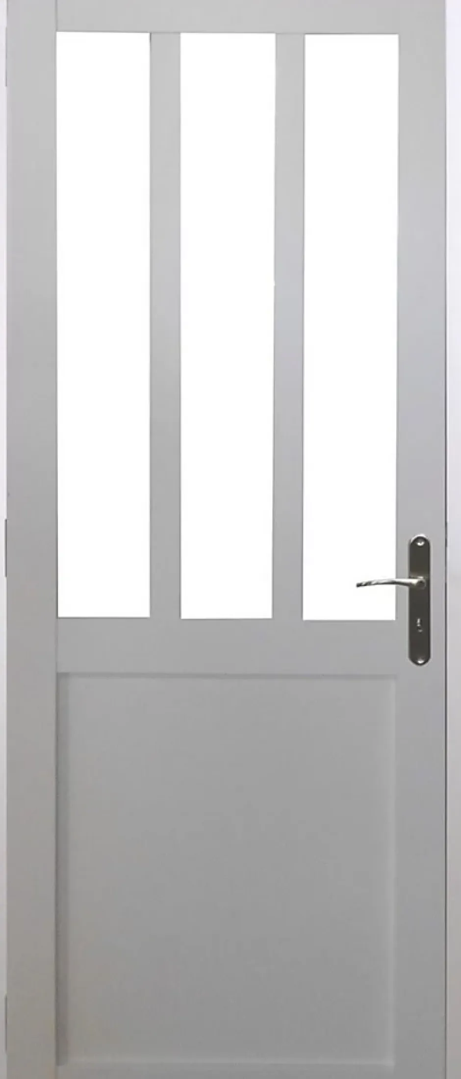 Bloc-porte Atelier Blanc Vitrage transparentLuminosite, elegance et confort interieurLe bloc-porte Atelier Blanc vitre est une solution ideale pour structurer vos espaces interieurs tout en conservant une excellente luminosite. Realise en MDF enrobe blanc et fabrique en France, il s’integre parfaitement aux interieurs contemporains et modernes.Avec une dimension cotes tableau de H 204 x L 73 cm et une dimension hors tout de 211,6 x 81,5 cm, ce bloc-porte est equipe d’un ouvrant de 40 mm d’epaisseur, garantissant robustesse et stabilite.Il est dote d’un vitrage transparent de 4 mm, permettant le passage de la lumiere tout en structurant l’espace. L’ensemble est monte sur une huisserie ajustable de 72 a 100 mm, assurant une parfaite adaptation aux differentes epaisseurs de murs.Livre pret a poser, ce bloc-porte comprend une serrure a cle et une gache posees, ainsi qu’un joint d’isolation isophonique pour un confort acoustique optimal.Sens d’ouverture : poussant gauche.Poignee non fournie.Conçu exclusivement pour un usage interieur, ce bloc-porte doit imperativement etre installe dans un espace chauffe et isole, afin de garantir sa durabilite et ses performances.