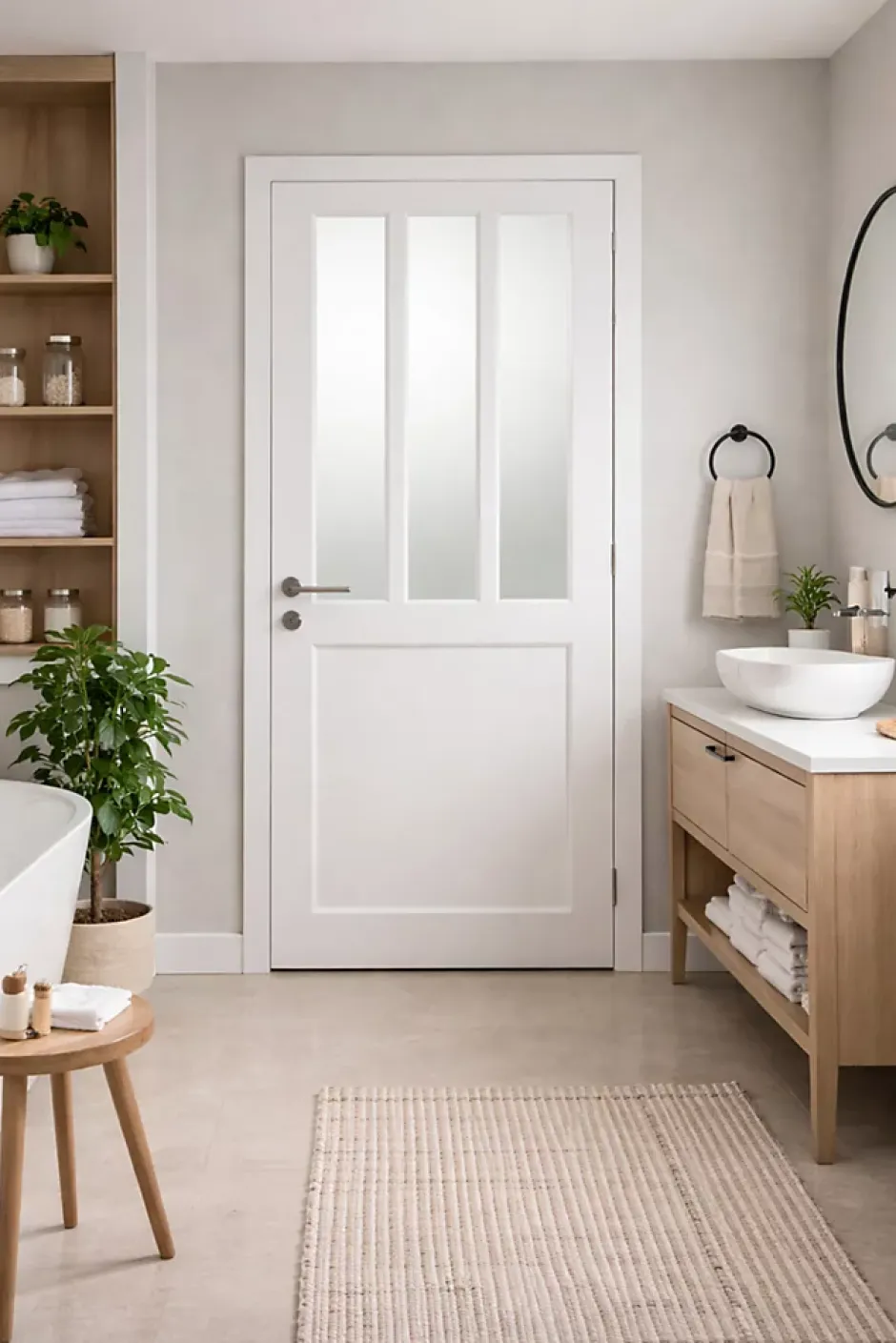 Bloc-porte Atelier Blanc Vitrage depoli securiteIntimite, luminosite douce et confort interieurLe bloc-porte Atelier Blanc vitre depoli est une solution elegante pour structurer vos espaces interieurs tout en preservant l’intimite. Realise en MDF enrobe blanc et fabrique en France, il s’integre parfaitement aux interieurs contemporains grace a son design sobre et lumineux.Avec une dimension cotes tableau de H 204 x L 73 cm et une dimension hors tout de 211,6 x 81,5 cm, ce bloc-porte est dote d’un ouvrant de 40 mm d’epaisseur, garantissant robustesse et stabilite.Il est equipe d’un vitrage depoli de securite de 4 mm, permettant une diffusion douce de la lumiere tout en assurant discretion et confort. L’ensemble est monte sur une huisserie ajustable de 72 a 100 mm, offrant une adaptation optimale aux differentes epaisseurs de murs.Livre pret a poser, le bloc-porte comprend une serrure a cle et une gache posees, ainsi qu’un joint d’isolation isophonique pour un meilleur confort acoustique.Sens d’ouverture : poussant gauchePoignee inclusConçu exclusivement pour un usage interieur, ce bloc-porte doit imperativement etre installe dans un espace chauffe et isole, afin de garantir sa durabilite et ses performances.