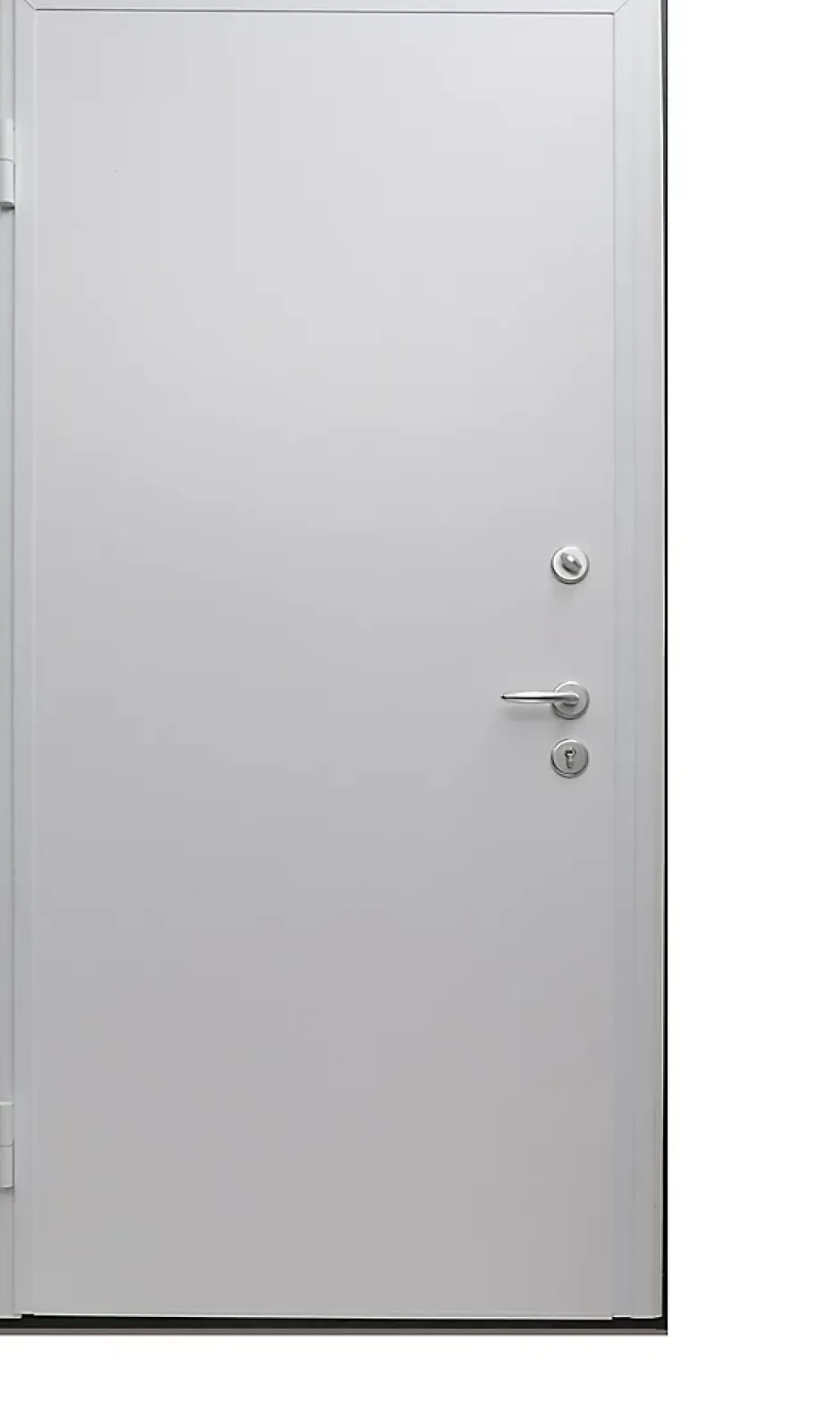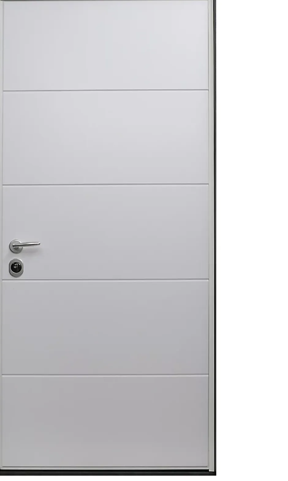 - Cadre de porte et profil périphérique du vantail laqué blanc. Revêtement en finition laqué blanc (décor lisse à l’intérieur et pantographé à l’extérieur).