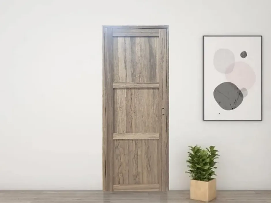 Bloc-porte Frake 3 panneauxCaractere du bois et design contemporainLe bloc-porte Frake 3 panneaux est une solution elegante et chaleureuse pour structurer vos espaces interieurs. Realise en MDF avec placage Frake et fabrique en France, il se distingue par son veinage expressif et son esthetique contemporaine.Avec une dimension cotes tableau de H 204 x L 73 cm et une dimension hors tout de H 210,2 x L 79,5 cm, ce bloc-porte est dote d’un ouvrant de 40 mm d’epaisseur, garantissant robustesse et stabilite. Les panneaux MDF plaques Frake offrent un rendu naturel et une finition soignee.La porte est composee de trois panneaux MDF, creant un design structure et elegant. Elle est montee sur une huisserie de 72 x 45 mm, assurant une installation fiable et durable.Livre pret a poser, le bloc-porte comprend une serrure a cle et une gache posees, ainsi qu’un joint d’isolation isophonique pour un confort acoustique optimal.Sens d’ouverture : poussant gauchePoignee non fournieConçu exclusivement pour un usage interieur, ce bloc-porte doit imperativement etre installe dans un espace chauffe et isole, afin de garantir sa durabilite et ses performances.