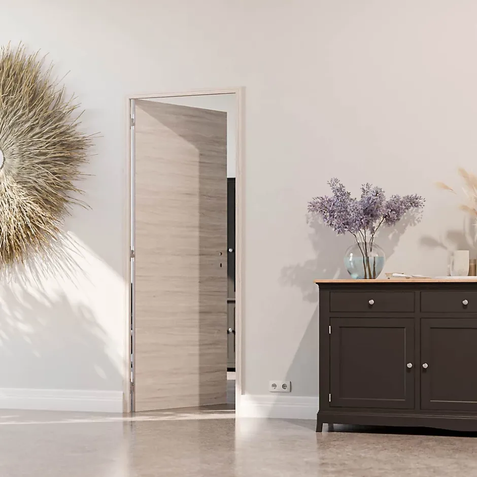 Les caractéristiques du bloc-porte “à la française” Avec son décor imprimé Oslo, ce bloc-porte intérieur 73 cm de largeur et 40 mm d’épaisseur peut être posé en début ou en fin de chantier. En matière d’esthétique, il fait son petit effet et se fond harmonieusement à la décoration de votre maison ou appartement. Pratique, ce bloc-porte Oslo 73 cm possède des huisseries hydrofuges et extensibles, permettant de s’adapter sur des cloisons de 50 à 72 mm. Cela simplifie la pose dans la réservation, en neuf ou rénovation. Le bloc-porte est aussi équipé d’une serrure magnétique silencieuse à clé (poignée non fournie). La structure alvéolaire nid d’abeille haute densité offre une meilleure rigidité à la porte. Poussant droit ou gauche Poignée non fournie Un bloc-porte solide, durable et esthétique Le bloc-porte Oslo combine qualité, résistance et esthétique. Le décor Oslo offre un look moderne et style scandinave, il s’adapte à tous les intérieurs. Pour ce qui est des ferrures, il compte 3 paumelles aspect inox brossé. L’ensemble offre un résultat décoratif et contemporain. Grâce à sa certification PEFC (Programme de reconnaissance des certifications forestières), vous avez la garantie que le bois de votre porte est issu de forêts gérées durablement. Revêtement mélaminé décor Certification PEFC Un bloc-porte simple d’installation Facile à poser, le bloc-porte Oslo arrive chez vous avec une notice de pose détaillée. Celle-ci vous explique toutes les étapes à suivre pour une installation sans difficultés. Toutefois, si vous avez besoin d’un coup de main, vous pouvez vous appuyer sur notre service client. Pose début ou fin de chantier Pour le neuf et la rénovation