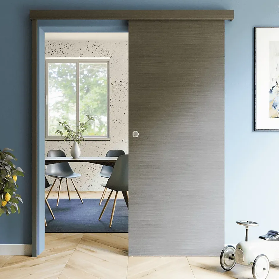 Butée de porte coulissante Costa Rica La butée pour porte coulissante Costa Rica est l’accessoire idéal pour accompagner le système de rail coulissant en applique Coulicool. Conçue spécialement pour des portes coulissantes en applique, cette butée s’installe facilement contre la cloison. Avec son champlat de recouvrement clipsable, elle apporte une finition propre et soignée à votre ensemble coulissant, sans vis apparents. La butée est fabriquée en MDF, recouverte d’un papier décor imitation bois pour une intégration homogène dans votre intérieur. À quoi sert une butée de porte ? Cette butée de porte, en plus d’ajouter une touche décorative, bloque efficacement la lumière entre la cloison et la porte coulissante une fois celle-ci fermée. Elle est idéale pour les pièces nécessitant une obscurité totale. Également conçue pour accueillir le loquet de la serrure, la butée permet de maintenir la porte fermée de façon sécurisée. Cette fonction est idéale pour garantir un haut degré d’intimité dans des pièces comme les toilettes ou les chambres.
