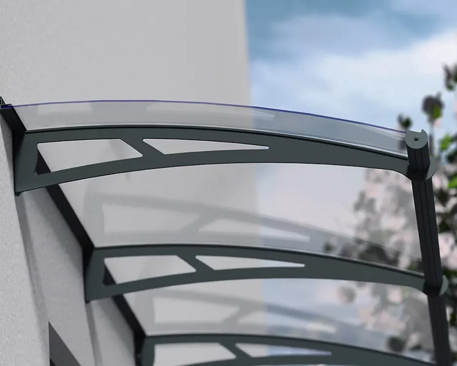 - Avec son design intemporel, l’auvent de porte Aquila ultra-résistant saura parfaitement s’adapter à votre maison.