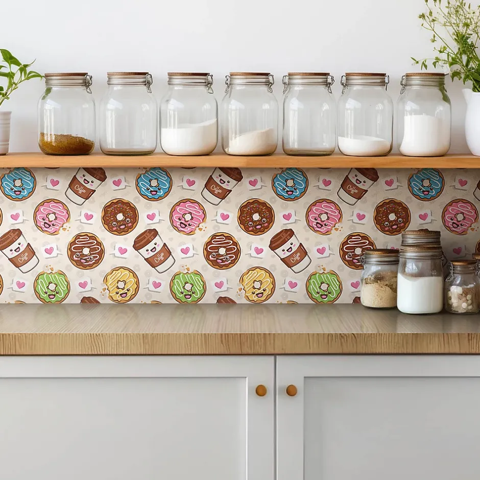 Carreaux vinyle 30x30 cm Beignets et café de dessins animés 9 pcs-Tulup
